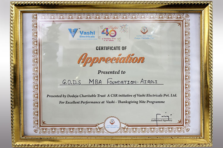 "Vidhyaiva Sarvadhanam 2019" The Best teachers & Academic Exellence Award was given by In Major City , Navi Mumbai to our teachers and MBA Foundation .