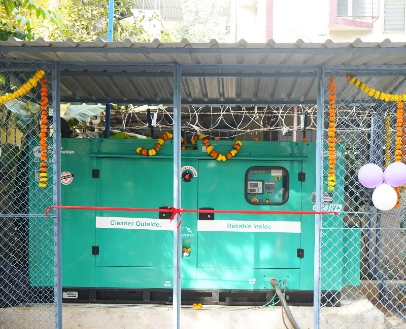 In order to overcome the above situation, a need was felt to procure a DG Set which can auto-start whenever there is a power failure. Taking into account minimum load requirement of the Centre, plus 25% reserve capacity; a suitable Genset of Cummins Make 58.5 kVA range has been selected. The total cost of the Project came around Rs. 10 Lacs including installation of a Synchroniser Unit, which utilises Solar Power while Gen Set is in operation. M/s Marsh McLennan, Mumbai has generously donated full amount covering the entire cost of the DG Set Project.