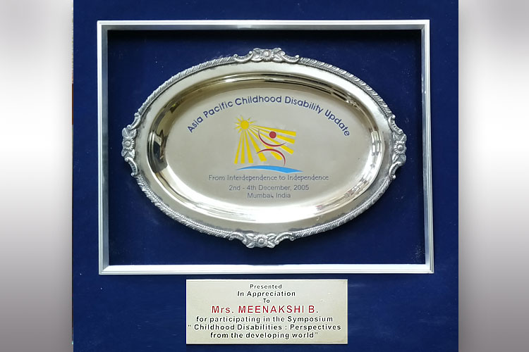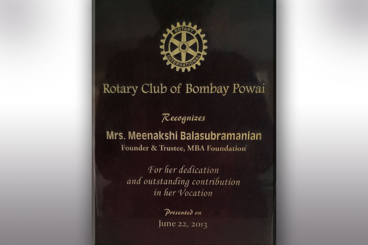 In 2013 Rotary Club of Bombay Powai recognized Meenakshi B for dedication and Outstanding Contribution for her in the Field of training for the disabled beneficiaries.