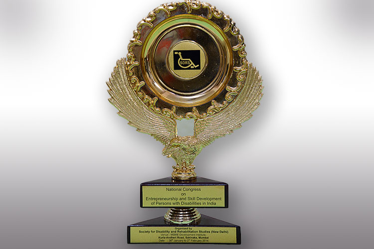 National Congress Entrepreneurship & Skill Development of Persons with Disabilities in India organized Society for Disability & Rehabilitation Studies (New Delhi) awarded the Trophy to Meenakshi B in 2014