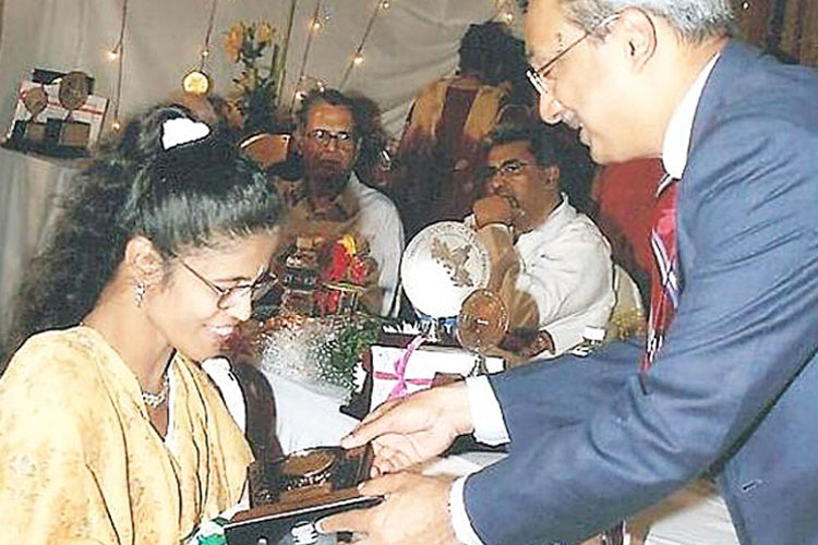 Mrs. Meenakshi Balasubramanian, from Ambani Foundation Award presented by Ms Hema Malini – Year 2009